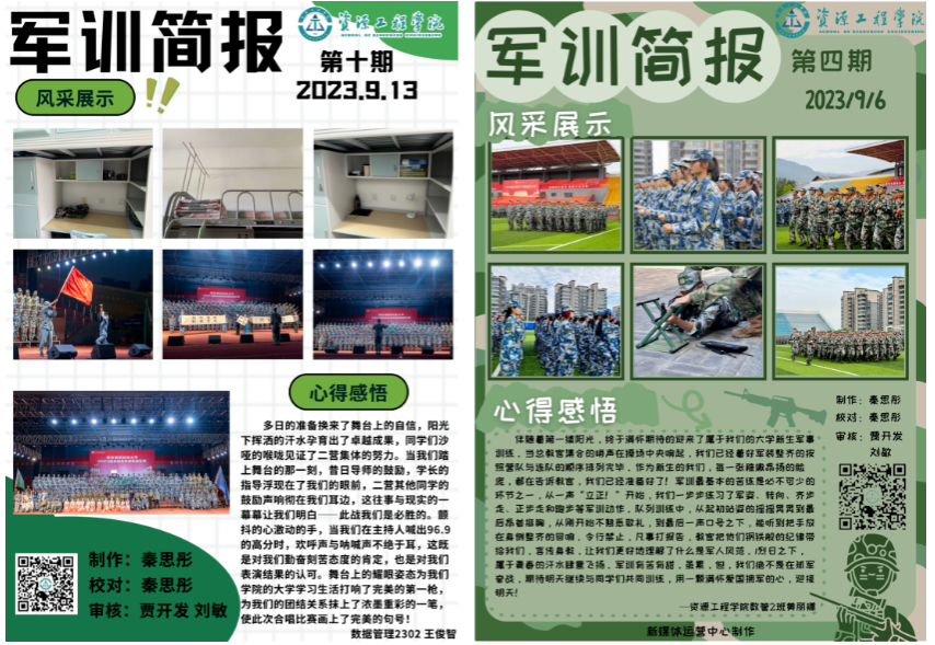铿锵的誓言,是青春的赞歌;艰苦的训练,是身体素质与心理素质的双重考验,是自我精神和团队意识的绝佳磨炼。教官的悉心指导,同学们响亮的口号、整齐的方阵,构成了操场最亮丽的风采。军训日常的训练从刚开始最基础的队列训练,到最终以方阵形式带来的精彩会操,都展示出资源学子良好的精神风貌,各位同学们团结一心、严守纪律,收获颇多。