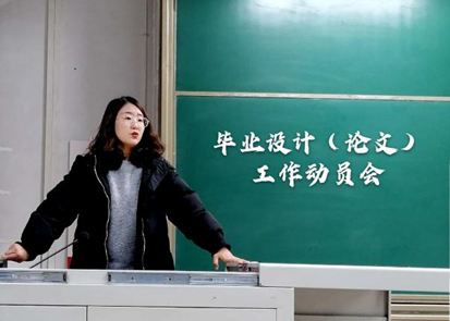 此后,李晶老师进行毕业设计(论文)动员并对本届毕业设计(论文)的相关规定做了详细解读。她表达了学校及学院对毕业设计的高度重视,指出了毕业设计(论文)的重要性,要求大家要按照时间要求、保质保量的地完成毕业设计(论文)。李晶老师从毕业设计(论文)的目的意义、时间安排、工作流程及学生工作要求以及工作量等方面认真负责的对大家进行了讲解。最后,她希望大家能认真对待毕业设计(论文),为自己的大学生活画上圆满的句号。李晶老师还强调在撰写毕业设计(论文)过程中的学风建设和违纪问题,号召大家诚信做人,独立完成大学最后一道“考题”。