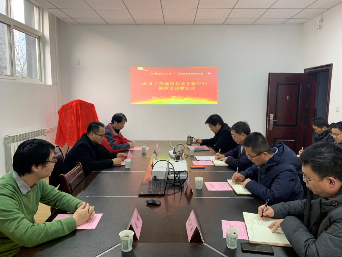 为推进矿业工程人才培养及学科建设发展,1月3日,快猫短视频 与北京国发曼英智能科技有限公司共建“矿业工程虚拟仿真实验中心”揭牌及捐赠仪式在快猫短视频 324会议室举行。北京国发曼英智能科技有限公司总经理张海超、技术总监孙珲,快猫短视频 实验室及设备管理处副处长初士兴,快猫短视频 院长卢才武、副院长郭进平、院长助理赵江平及教师代表参加仪式。揭牌仪式由郭进平主持。