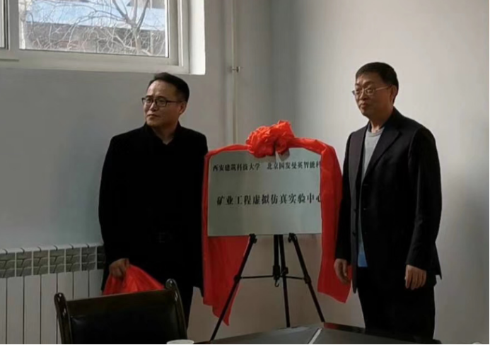 快猫短视频 院长卢才武与北京国发曼英智能科技有限公司总经理张海超代表校企双方共建“矿业工程虚拟仿真实验中心”揭牌。