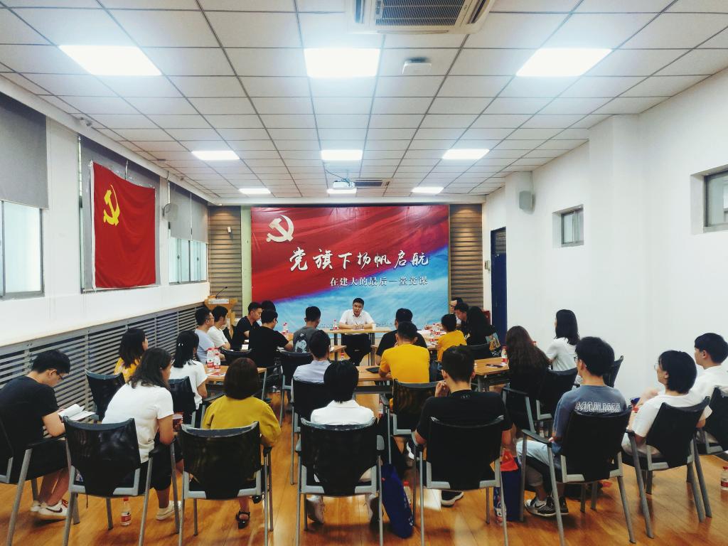 历程九九,弦歌不辍传薪火;誓言铮铮,赤诚永恒守初心。离校临别之际,不忘党的嘱托与期望,不忘党员的使命与担当,资源学院2020届毕业生党员在建大的最后一堂党课——“党旗下扬帆启航”主题党日教育活动于7月6日上午举行。资源学院党委书记魏彦民为各学生党支部书记及全体毕业生党员上了在建大的最后一堂党课,党课由学院党委副书记、副院长刘冠主持。