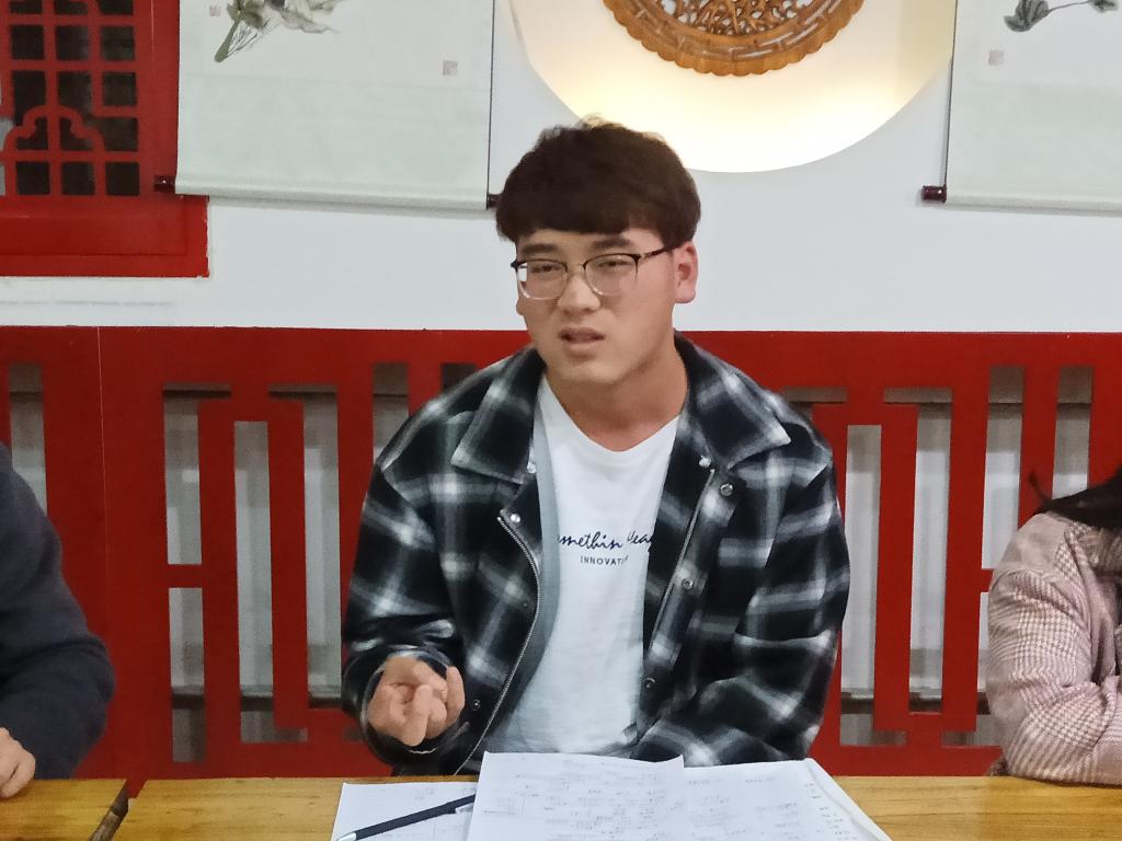 活动伊始,由安全工程1701班的庞博分享他的感悟。在辩论场上久经磨砺的他凭借着出色的口才和自己的博学,围绕"我们看到的都是别人想让我们看到的"和"我们看到的都是我们想要看到的"两个方面展开讲述。庞博同学从贴吧讲到大数据,从书本讲到网络,从限制讲到自由,把自己的读书感悟以诙谐幽默的语言表达出来,让同学们在活泼轻松的气氛中感受到了读书的魅力所在。