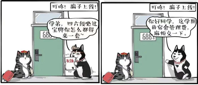这是最需要强调的一点,骗子最喜欢从大一萌新入手。一般都是冒充教育部或国家机构给学生打电话,以助学金或返还学费的方式;或冒充学生朋友以买车票飞机票等方式,骗取学生的银行卡号及密码;或冒充老师让交费用骗取钱财。甚至有的新生群也是骗子的“天罗地网”,一直要谨慎识别真假新生群和非官方群中的信息,每年都有大一新生被傻傻骗取了钱财,甚至有的达到了五位数。所以大家一定要警惕起来,一旦遇到这类电话,要第一时间向正规机关询问或向朋友亲人求证,以免上当受骗,同时也要提醒自己的家长谨防此类诈骗。