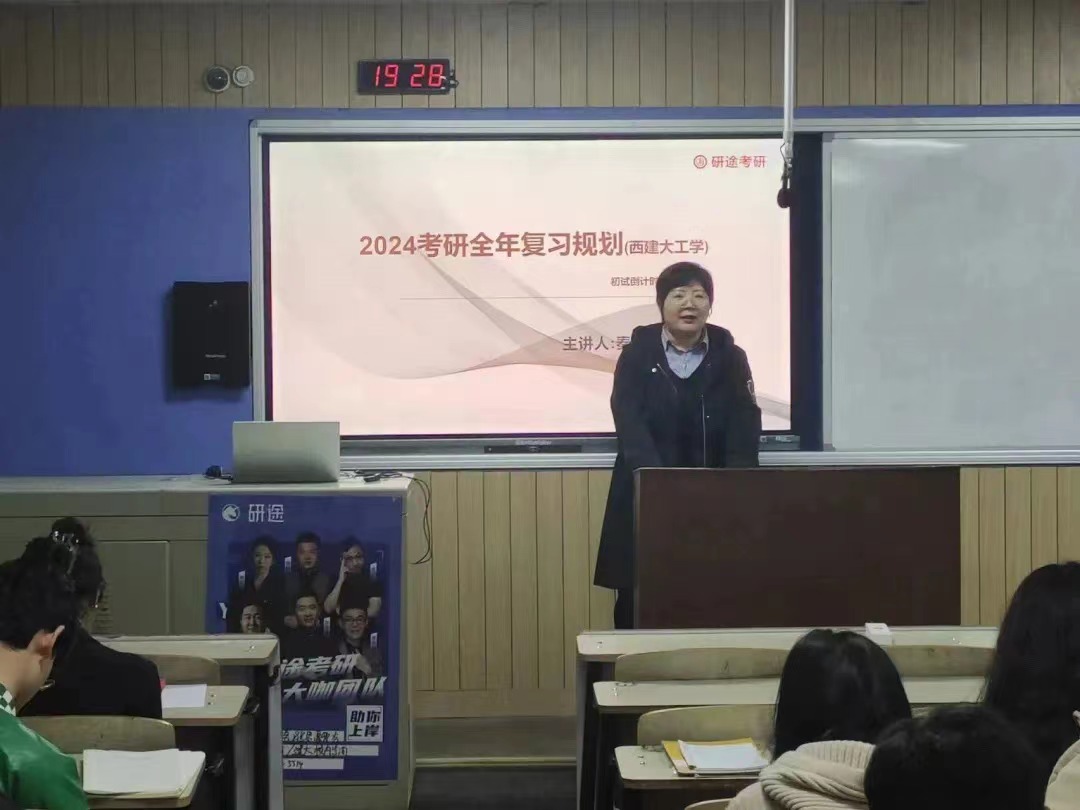 于雁塔校区教学大楼308举办考研全程规划讲座,邀请研途考研秦怡、考研特级讲师张永怀教授为2020级本科生考研复习指点方向,答疑解惑。