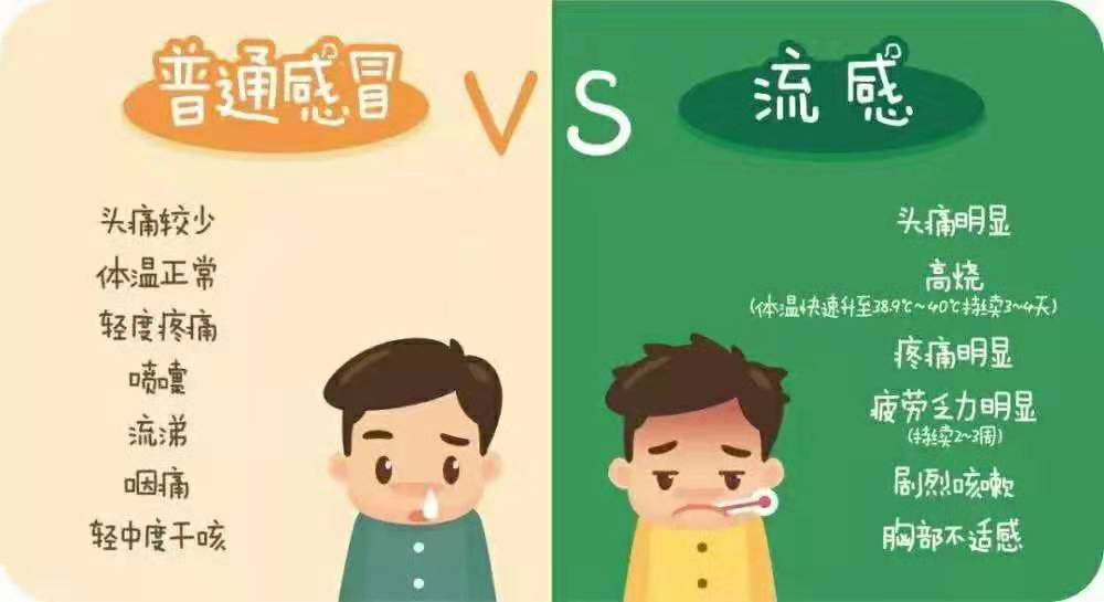 2.临床症状不同:流感的症状为畏寒,高热,体温可迅速升至39℃~40℃,全身无力,腰背和四肢酸痛;普通感冒的临床症状为流鼻涕,打喷嚏等,全身症状较轻,不发热或仅有低热,一般3~5天就会痊愈。