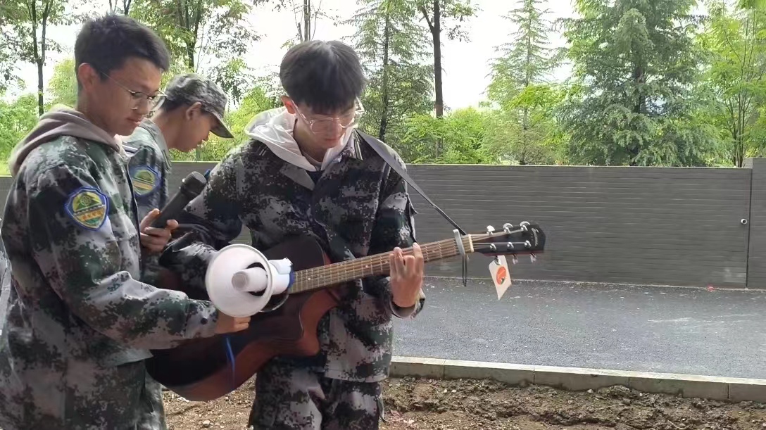 为缓解军训压力,活跃军训氛围,我院于4月17日在南山操场举办了第六期军训文艺汇演。有同学带来了吉他,他拿起吉他弹起一首曲,动作是那么的熟练,吉他声是那么优美。跃动的音符为陶然的心送来了美妙的乐章,所有人都因这温柔的旋律卸下了压力与疲惫。彼时轻柔的风吹过,军训的苦和累就这么随着风和曲消散了。