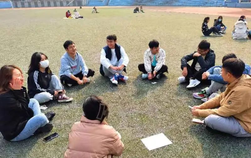 组内热身游戏结束后,开始进行了第一个游戏——人数抱团。圈内同学刚开始喊了“2!”,大家都两两抱在一起,先淘汰了一名同学。随后又进行了几轮游戏,最终剩下了五名同学成为赢家。