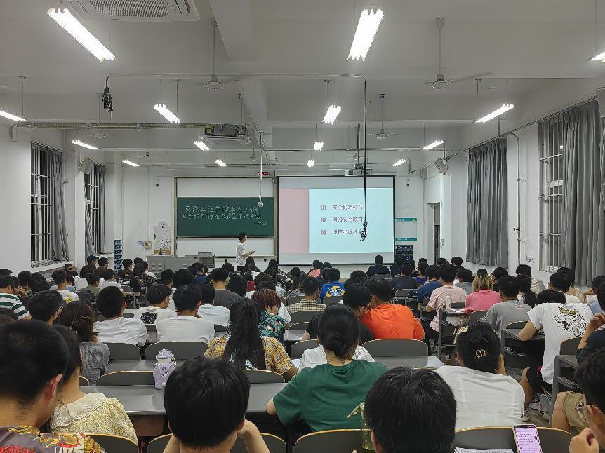 本次年级大会包含安全稳定教育、网络安全教育、诚信考试教育以及四六级考试动员四个方面。首先,和郑翔强调了离校请销假制度及宿舍管理制度,并结合近期草堂校区的网络诈骗案例进行网络安全教育,进一步提升资源学子安全意识;其次,通过《快猫短视频
