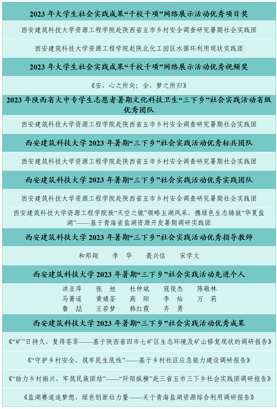 本次实践活动结合资源学院学科专业特点,将资源学子深厚的家国情怀和所学的专业技术融入专项实践活动。在院团委的组织筹划下,学生教师齐动员,共号召510名本科生、36名硕士研究生共同组建38支实践团队,实现一、二、三年级本科生参与率100%,且包含18名少数民族学生,实践团在“中青校园APP”、陕西省社会实践新媒体系统和“第二课堂APP”报备率100%。