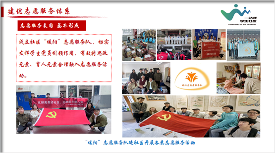 学院统筹做好志愿服务和社会实践活动,鼓励学生在“思政大课堂”中增强社会责任感与成才使命感,强化学院学生社区育人阵地建设,加强学生自我管理、自我服务和使命担当意识。学院成立社区“暖阳”志愿服务队,指导开展“关爱离退休老教师志愿服务”“抗疫志愿服务”“图书馆书籍整理劳动实践教育”“禁毒防艾宣传”等志愿服务活动,累计发起志愿服务行动700余次,参与人数4200余人次,累计志愿服务时长达3万余小时。在组织活动中,积极发挥学生党员引领作用,将思政元素、育人元素合理融入志愿服务活动,更好地增强学生政治认同、思想认同、理论认同、情感认同,更好地传递志愿服务精神,激发更多人参与志愿服务,为社会发展做出积极贡献。
