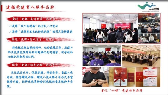 学院以满足学生的实际需求为导向,以促进学生全面发展为旨向,依托“一站式”学生社区为师生党支部搭建交流共建平台,积极推动思政力量、专业力量、管理力量、服务资源注入到学生社区建设,促进党建与育人工作相互融合,把立德树人根本任务落到实处。将雁塔校区工科楼609设立为“资源青年之家”党员活动室,挂牌“党员宿舍”61间,学生可以在社区开展党日活动,充分挖掘学生的“他育”与“自育”之力。通过“新生党员在建大的第一堂党课”“读懂中国”“身边的朗读者”等百余场活动,推动学院领导班子联系师生党支部,深入社区一线服务学生,成功打造“书记十课”“源来有约”“知源读书会”等一系列社区党建特色活动品牌。强化组织育人功能,将组织育人深嵌学院“一站式”学生社区建设、“三全育人”工作体系、党建和思想政治工作质量提升工程,推动基层党组织从“有形覆盖”到“有效融合”。