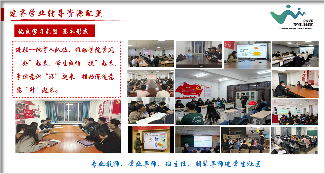 学院面向国家矿产资源重大战略需求,以培养具有创新精神和实践能力新工科人才为目标,强化学院育人特色,在学生社区成立“耕耘为学”年级学习发展中心。积极回应学生需求,改造学院原有空间,从有限的办公环境中开辟学生自习区和考研复习区,建立升学就业、竞赛指导共享空间,邀请专业教师、学业导师、班主任和朋辈导师进社区,每周固定在社区面向学生开设“考研复习答疑课”“职业生涯发展规划指导会”“创新创业竞赛经验交流会”“国奖榜样经验分享会”等系列主题活动50余场,覆盖学生4000人次,成立学业互助小组134对,持续打通学生学业压力的最后一公里。有效汇聚育人资源,完善协同育人体制机制,打造学生社区育人模式,通过有效发挥各方学习辅导资源的作用优势,促进教育主体、教育客体、教育介体等基本要素协同关联和交互发展,共同加强学风建设,实现学生从“要我学”到“我要学”的良好氛围。