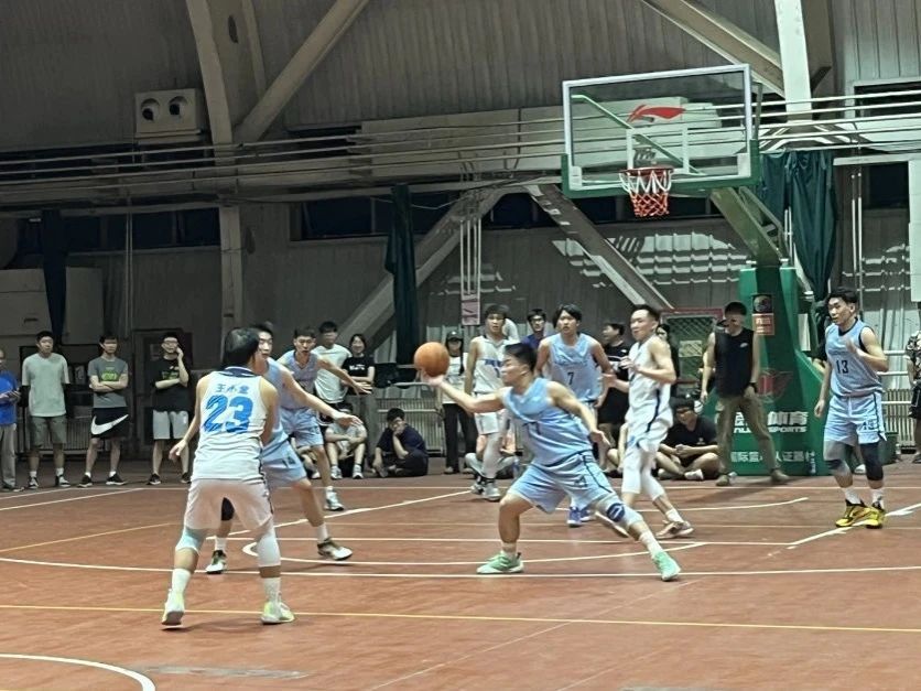 来到下半场比赛,冶金学院22号球员率先得分,资源学院0号球员在14号和77号球员的助攻下,投进三分球。双方球员在赛场上的喝彩声中连续得分。比赛结束,资源学院以净胜分6分的优势赢得本轮系列赛小组第一,率先出线。