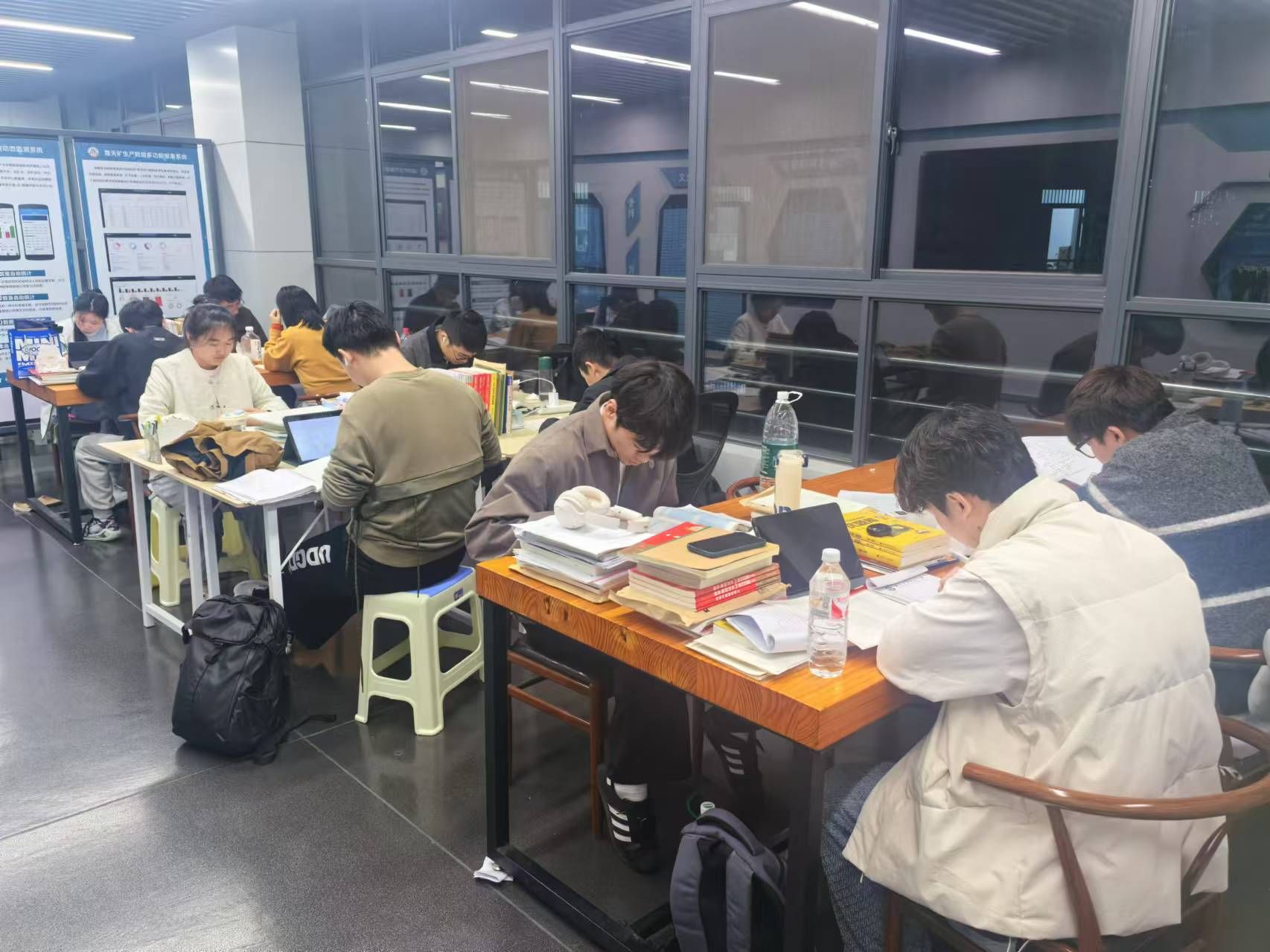 场地支持,提供便利。为满足学生考研复习、自习需求,在学校提供考研座位基础上,学院从有限办公环境中再度挖掘潜力,开辟学生自习区和考研复习区,配备超30套桌椅供学生使用,全力保障考研学生学习需求。