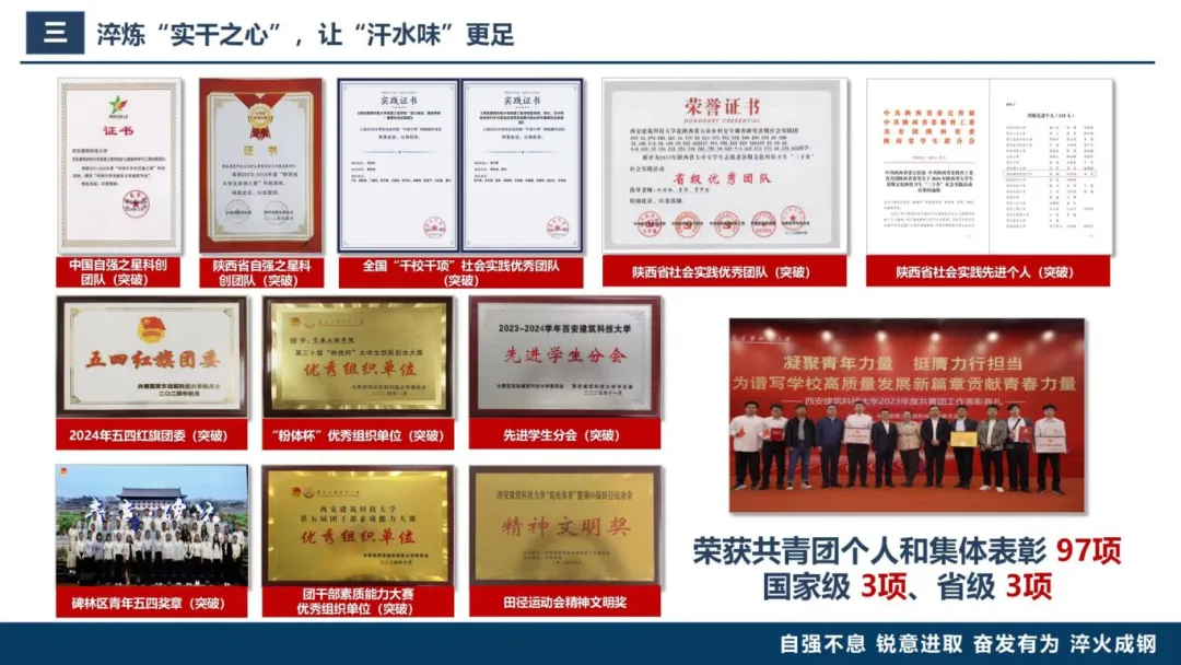 他以“矿业报国”为导向,将学院“四位一体”育人体系与学院团委三个作用发挥融合,不断优化“3+10”团委工作体系。通过强化思想引领、规范基层团务、筑牢网络教育阵地、丰富资源文化、践行志愿精神、驱动双创引擎,发挥共青团思政育人主力军作用,引领资源青年坚定“矿业报国”理想信念,不断推动共青团工作走深走实。过去两年中,学院共青团工作多点开花,实现“中国大学生自强之星科创团体”“陕西省大学生自强之星科创团体”等多个奖项“零”的突破,并连续两年荣获“五四红旗团委”荣誉,他个人也荣获陕西省社会实践先进个人、校优秀教工共青团干部。
