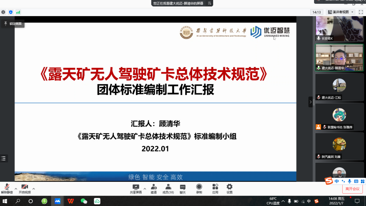 矿山智能科学与工程团队顾清华教授主持编制的《露天矿无人驾驶运输车辆总体技术规范》(以下称《规范》)团体标准送审稿进行评审。审核组成员由来自陕西省标准化研究院、中煤西安设计工程有限责任公司、快猫短视频