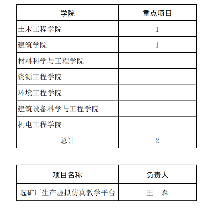 近日,学校下发了《关于公布2019年度校级虚拟仿真实验教学项目立项结果的通知》,共确定2019年度校级虚拟仿真实验教学项目12项,其中重点项目2项,培育项目10项。我院王森老师作为负责人的“选矿厂生产虚拟仿真教学平台”项目被确定为培育项目
