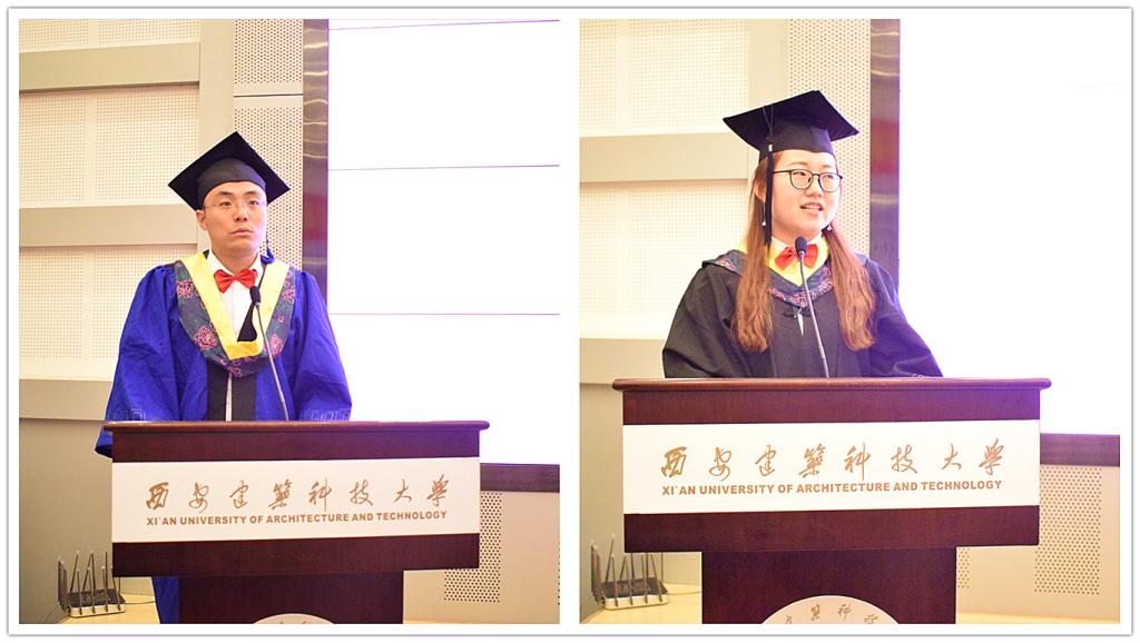 采矿工程2016级胡文 强和矿物资源工程1502班兰雪晨分别代表研究生和本科生发言。通过对在校学习、生活的回顾,向兢兢业业的老师们表达了感激之情,对离别校园表达了依依不舍之情,也向全体毕业生发起青春奋斗的号召,祝愿快猫短视频