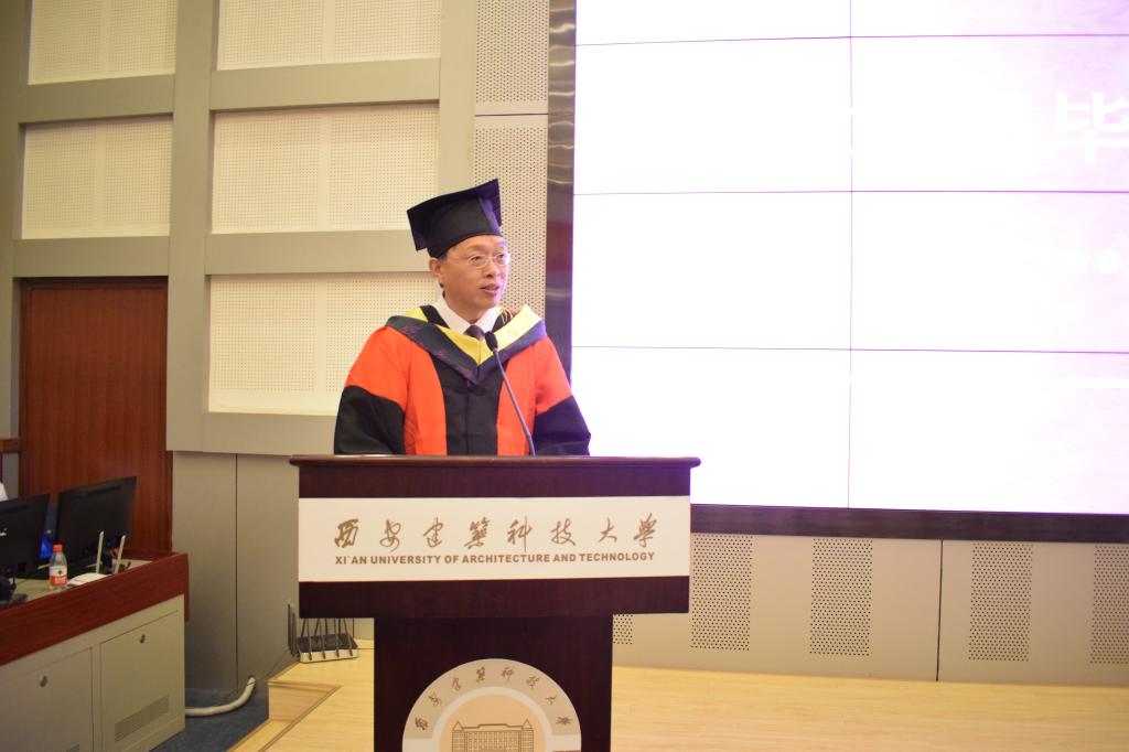 安全工程系钟兴润老师代表全体老师发言,希望全体毕业生能放大视野、铸就梦想,要依靠集体、不断学习,要脚踏实地、成就自我,收获属于自己的美好人生。