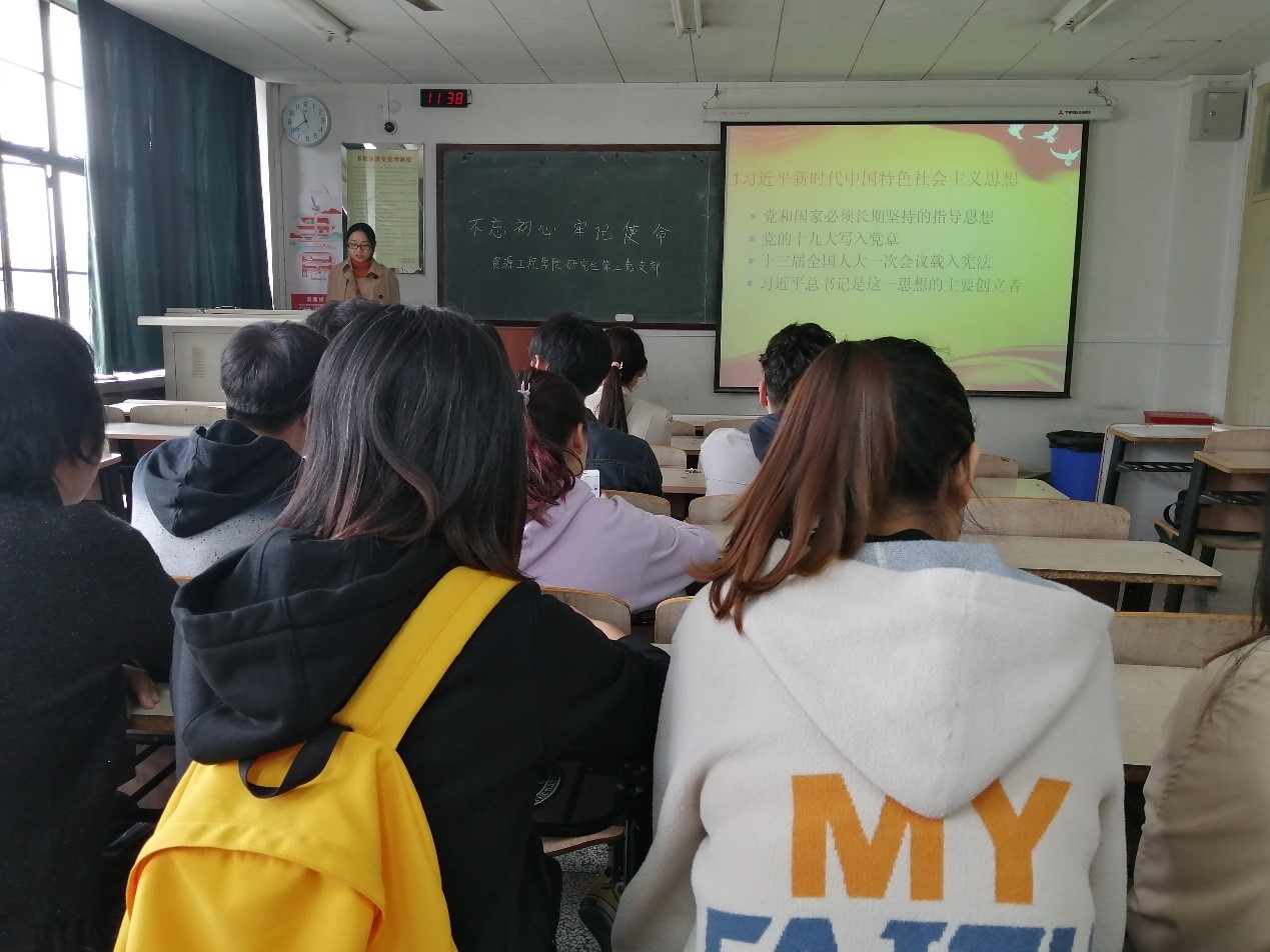 研究生第一党支部进行“不忘初心、牢记使命”主题党课学习,本次党课由支部书记强浩同志讲授。他从近代中国社会主要矛盾讲起,解析了我党“不忘初心、牢记使命”精神的历史渊源。他表示,作为青年学生,要学习老一辈的奉献精神和奋斗精神,牢记自我初心,践行自我使命。