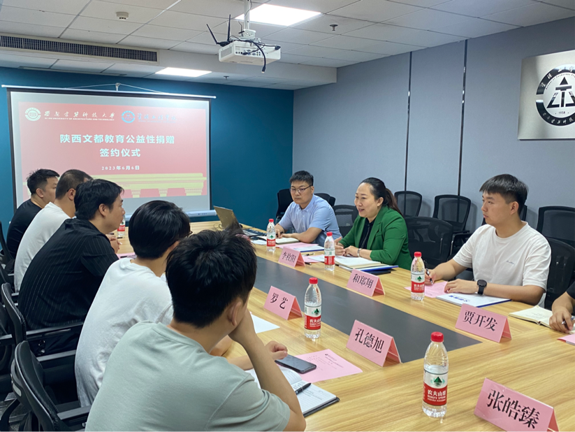 文都大学人才发展中心仇雅越向学院补充介绍了文都“第二课堂”职业规划课程和心理测试工作室。在对学生职业规划方面,可以进行方法思维的培养,帮助学生建立专业自信与专业认知。会上,校企双方还就捐赠合作方案、大学生人才培养、升学就业供需对接等方面进行了深入的交流,并举行了捐赠协议签约仪式。通过此次交流座谈,加深了对企业的认识,为今后提高人才培养质量、推动学生高质量就业、实现学生可持续发展打下了坚实基础。