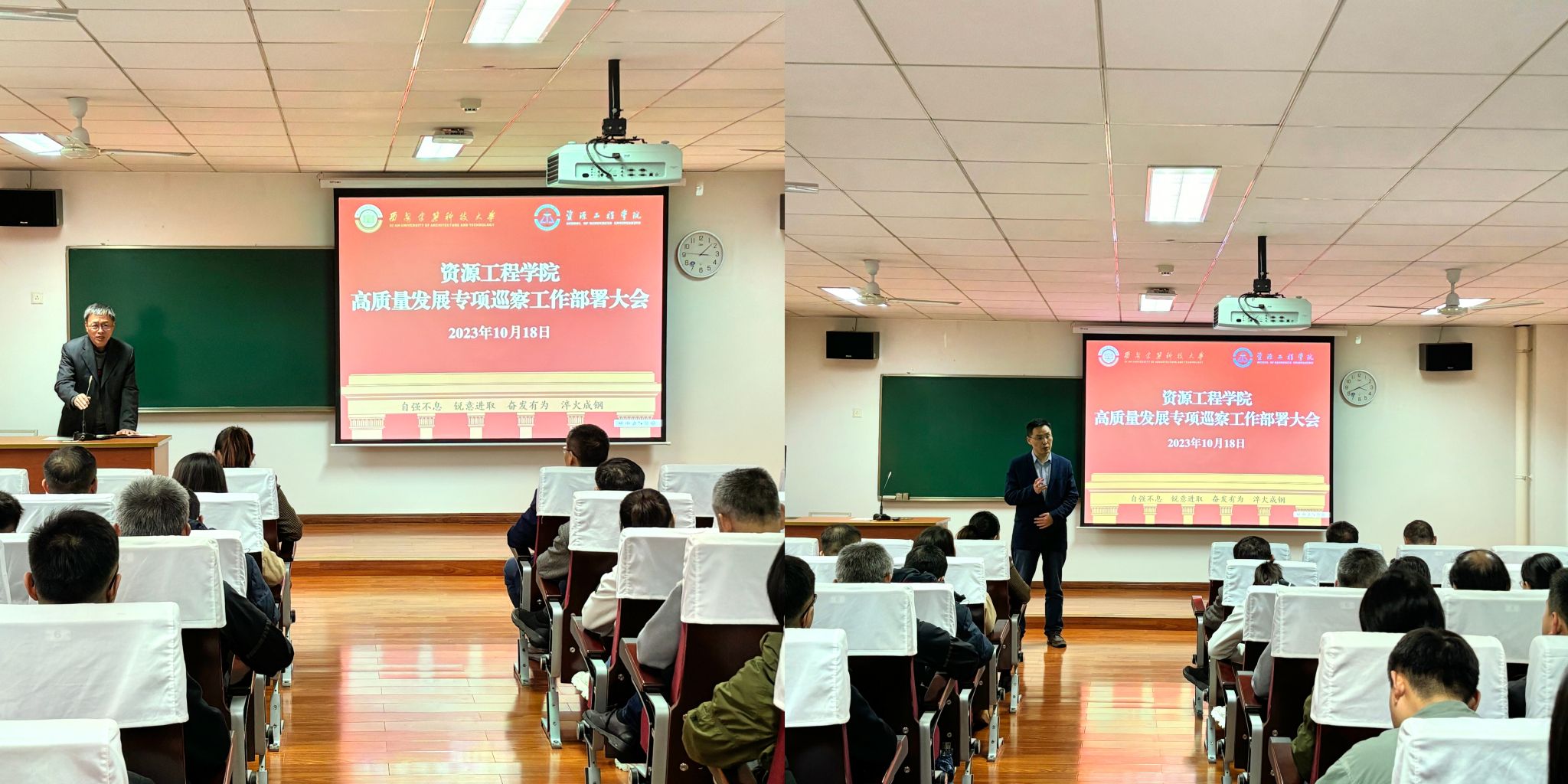 魏彦民对学院本科教育教学审核评估、项目获准等方面工作取得的成绩表示肯定,并对本次高质量发展专项巡查工作提出了三点要求,一是高度重视。全院教职工要充分认识专项巡察工作对学院高质量发展的重要意义。机关各科室,各教学系要围绕“四聚焦、十八看”、“11445”示范学院创建方案等内容进行再学习再传达再认识;二是认真梳理。学院机关各科室、各教学系要以本次巡查为契机,认真梳理学院在聚焦“四+”转型改造本科专业、围绕人才培养质量狠抓学风建设等方面的亮点特色工作,进一步厘清思路,落实各项举措。三是振奋精神。全体教职工应保持积极进取的工作状态,秉承“自强不息、锐意进取、奋发有为、淬火成钢”的资源精神,高质量完成专项巡查各阶段的工作,为学院下一步的发展打下坚实的基础。