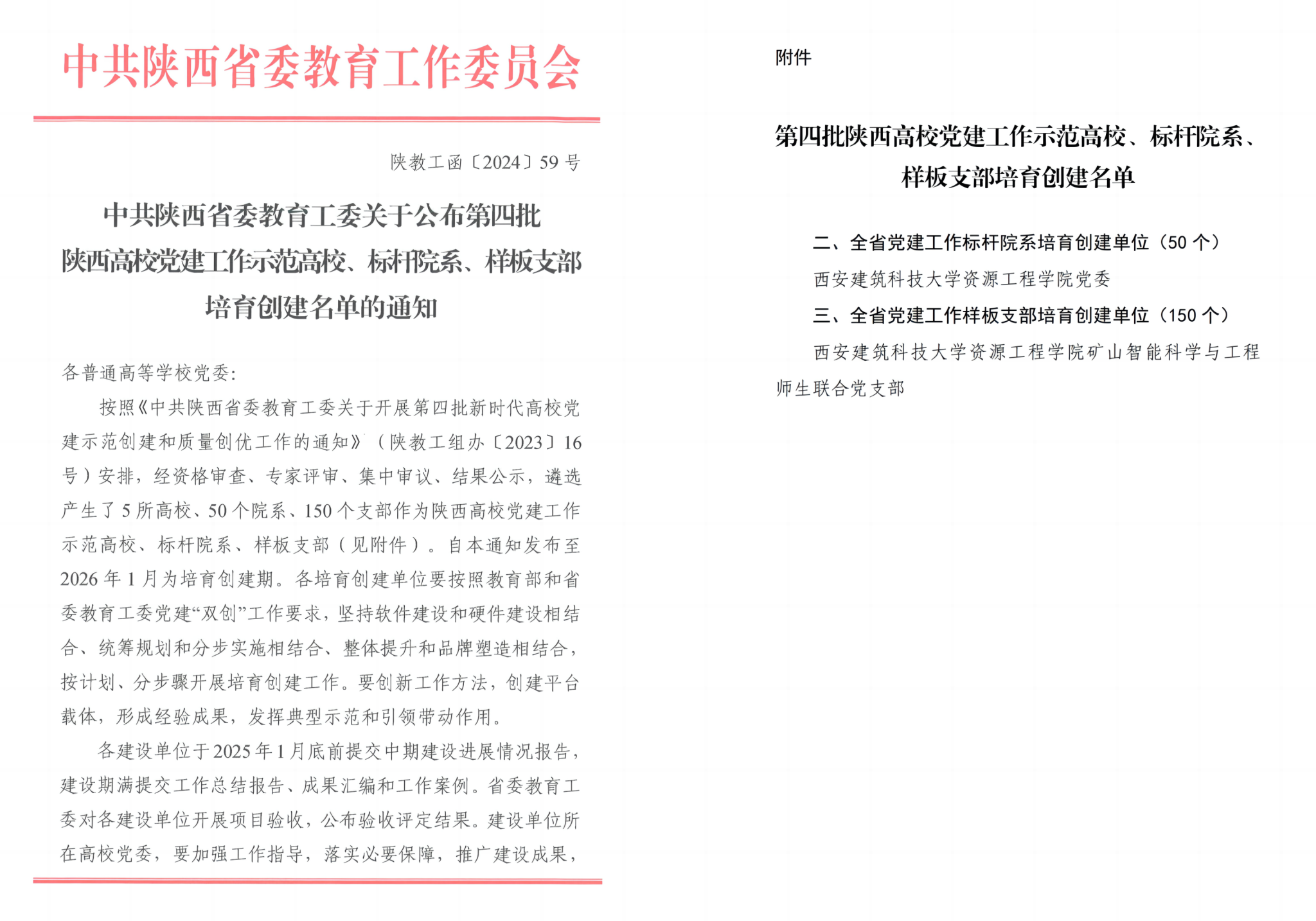 矿山智能科学与工程师生联合党支部入选第四批全省党建工作样板支部培育创建单位。