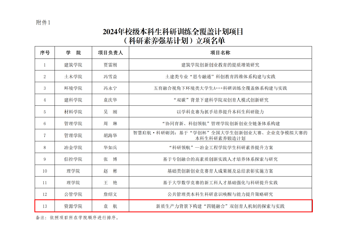 创新创业学院发布《关于公布2024年校级本科生科研训练全覆盖计划项目(科研素养强基计划)立项结果的通知》,经组织推荐、专家评审,学院辅导员袁航主持项目《新质生产力背景下构建“四链融合”对创育人机制的探索与实践》获批立项,成为首批立项的13个项目之一。