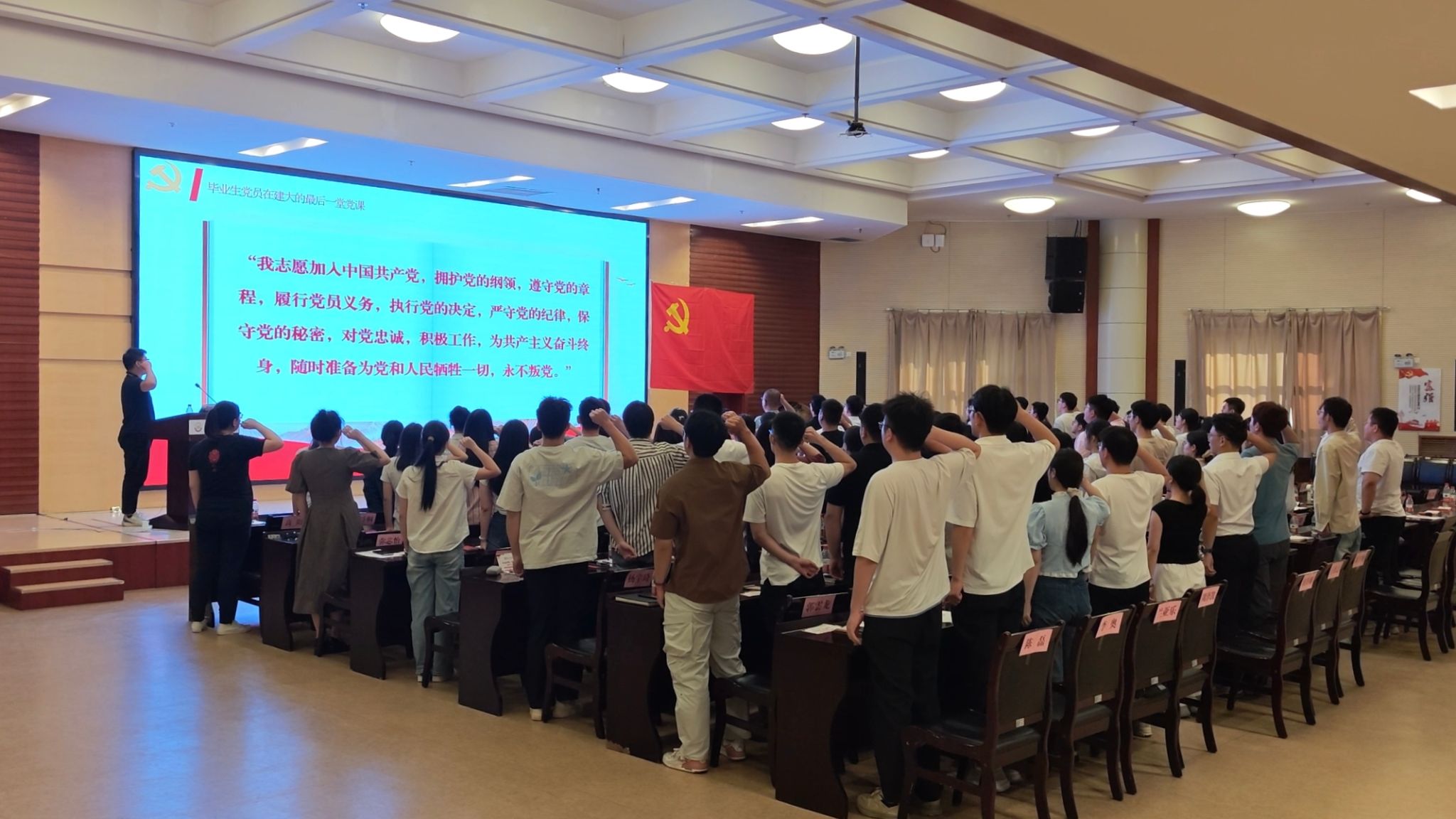 活动现场,全体党员面向党旗重温入党誓词。毕业生党员们纷纷表示,将铭记母校与学院的殷切期望,以廉洁自律为舵,坚守理想信念,深植家国担当,永葆共产党员的初心本色,在未来的学习和工作中奋勇争先,以实干实绩为母校增光、为党旗增辉,在砥砺奋进中谱写青春华章。
