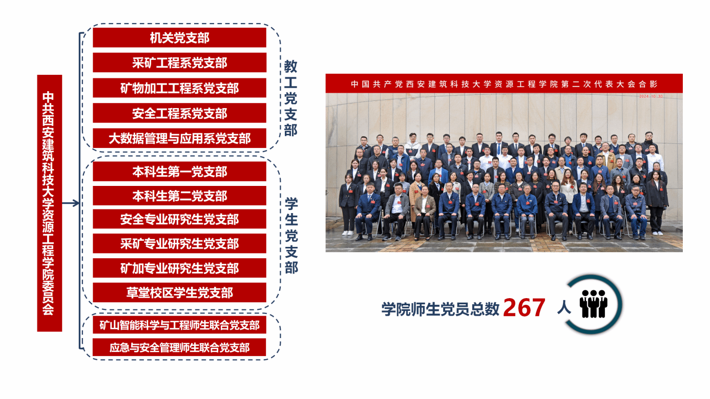 快猫短视频 党委辖13个党支部,其中教工党支部5个,学生党支部6个,师生联合党支部2个,专任教师党支部书记高级职称占比100%,“双带头人”配备率100%。学院现有党员267人,其中教工党员76人,占比89%,学生党员191人,占比13.17%。学院党委于2024年成功召开第二次党代会,现任两委委员平均年龄42岁,组织机构健全,工作队伍齐整,运行情况良好。